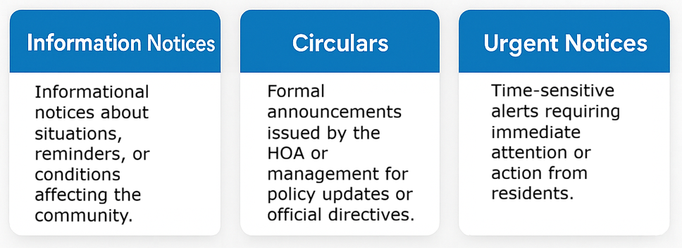Official communications intended to inform residents about important community matters.